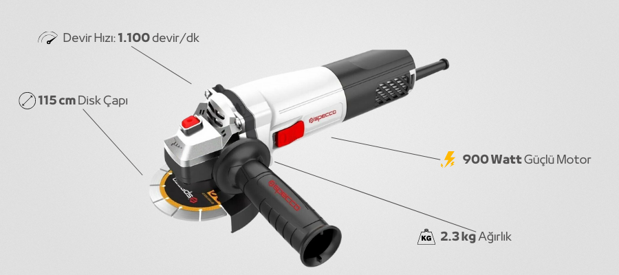 Specco 115mm Avuç Taşlama 900W SP-5018